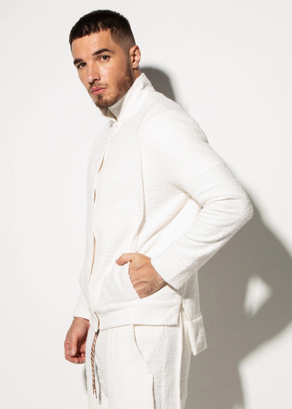 Jaqueta que combina conforto e sofisticação, com bolsos laterais que unem funcionalidade e estilo. Confeccionada em tecido de malha de alta qualidade, composto por uma mistura de fibras que garantem durabilidade e conforto.