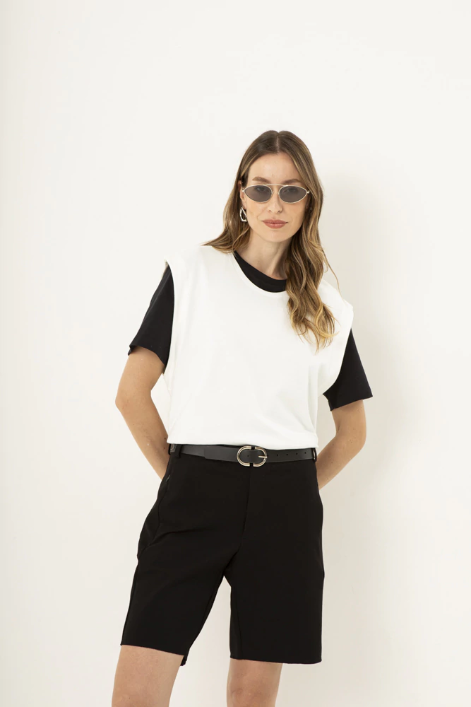 Regata com corte reto com detalhe exclusivo na barra, com a frente levemente mais curta que as costas, garantindo um caimento moderno e diferenciado.